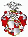 Wappen: im 2. und 3. Felde des g.-geränderten, s.r. quadrierten Schildes ein
